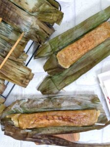 - After mixing all the ingredients put the tupig mixture in the banana leaves